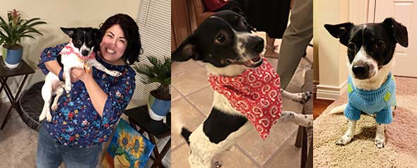 I am thankful and blessed to introduce to you Pepe! I adopted him last weekend through Foreverhome Rescue. We are having fun getting to know each other. Pepe sure has a pep in his step so we enjoy long walks. He loves a good snuggle and tug of war but I think most of all he loves to tuck himself away in the soft throw on the couch. He also did great at the vet where he was taken around to all the employees to gush over him.
