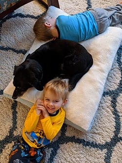 Hi everyone! As we are approaching Thanksgiving, I thought it was the perfect time to send a letter from home. 7 years ago, we adopted a rescue from your organization, who had started as Fiona, changed to Keisha during her first adoption, back to Fiona upon her return to your group, until one day we walked in and were blessed to find her. Her name for the past 7 years has been Annie aka Little Orphan Annie. We adopted Annie while we had one child and I was 7 months pregnant with our second. Three years after the birth of our second child, we welcomed identical twins to our family. Annie is beyond a blessing to this large family. We could not have asked for a more loving, patient dog sibling to all four of our boys. She is the best friend to every member of this family and true gift. We are thankful every day that she chose us.
