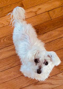 Our family adopted our sweet dog, Maeko, from A Forever Home 8 years ago. He was 8 years old at the time, and had had a difficult life. He was very shy at first, not even lifting his tail to wag for the first two weeks. His gait was stooped, and he would walk as if he didn't want anyone to see him. I knew he knew how to play, because he came with a soft, stuffed toy. Around the third week, I tried throwing the toy to see if he would get it. He suddenly jumped up, ran to get it, tossed it in the air with his teeth, whirled around, ran back to his bed, and gave a happy bark! He looked as startled as I did after he did that, and didn't seem to know where the bark came from! I was curious to find out "who else was in there." He continued to progress, beginning to lift up his tail and wag it as he walked. Over the following years, Maeko grew more and more social, would approach strangers to sniff them when they came in the door, would let my music students who came to my house pet him, and he loved to be carried around and pampered. He kept some of his independent streak, but overall, became a "lap-pooch." He had such a sweet disposition. At the beginning of March 2022, he became very sick. This was not the first time as he was beginning to age. He passed away at the age of 16. Our family was blessed by his presence and saw him as a gift from God to be enjoyed for a season. We are thankful that we were given the opportunity to have this sweet pup as part of our family.